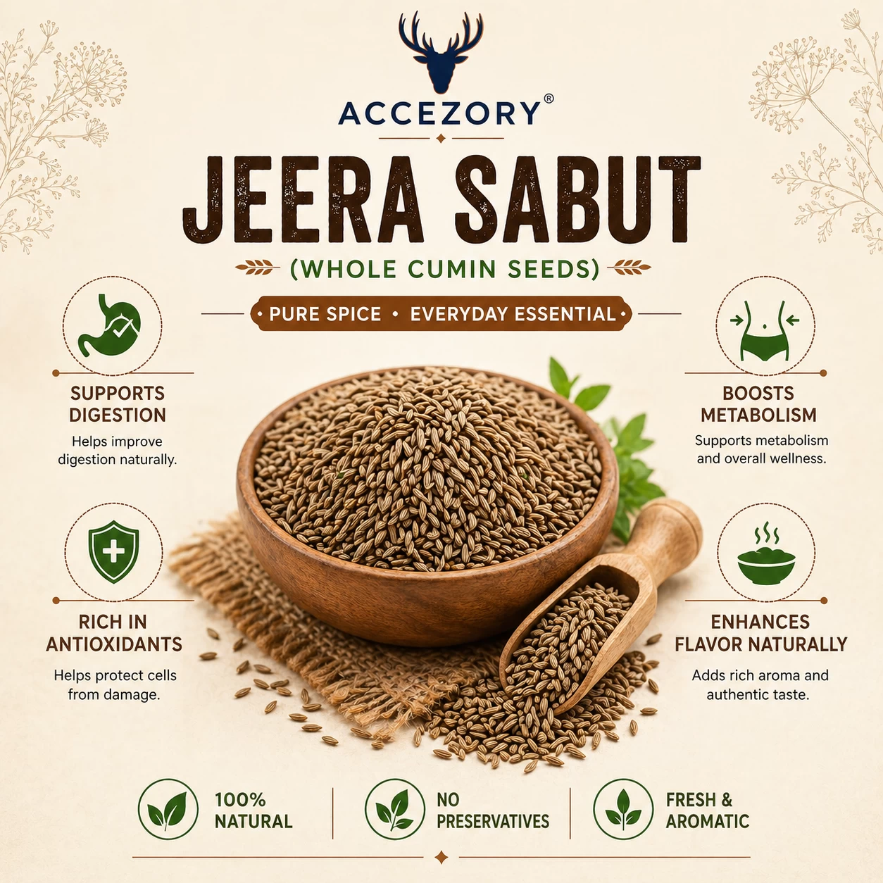 Premium quality whole cumin seeds (sabut jeera) known for their rich aroma and strong flavor. Perfect for everyday cooking, tempering, and enhancing the taste of your dishes.