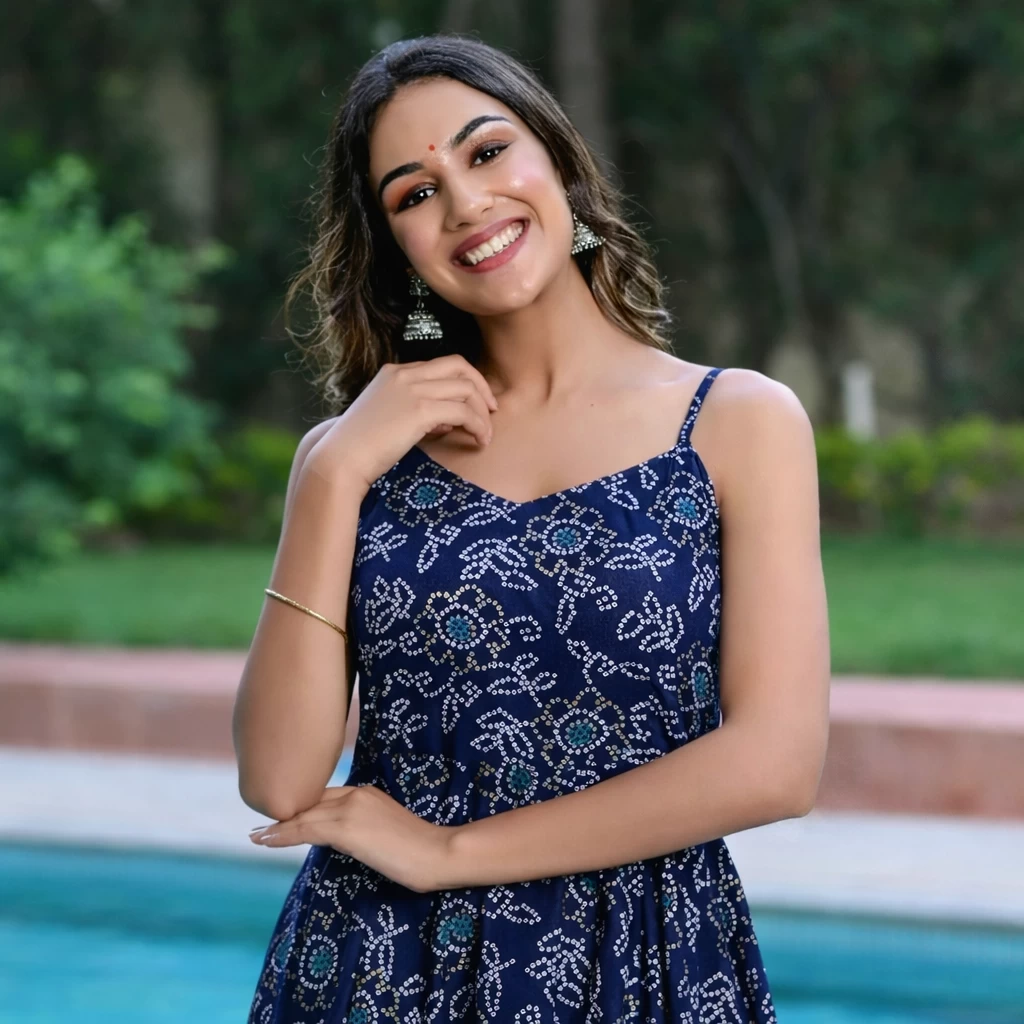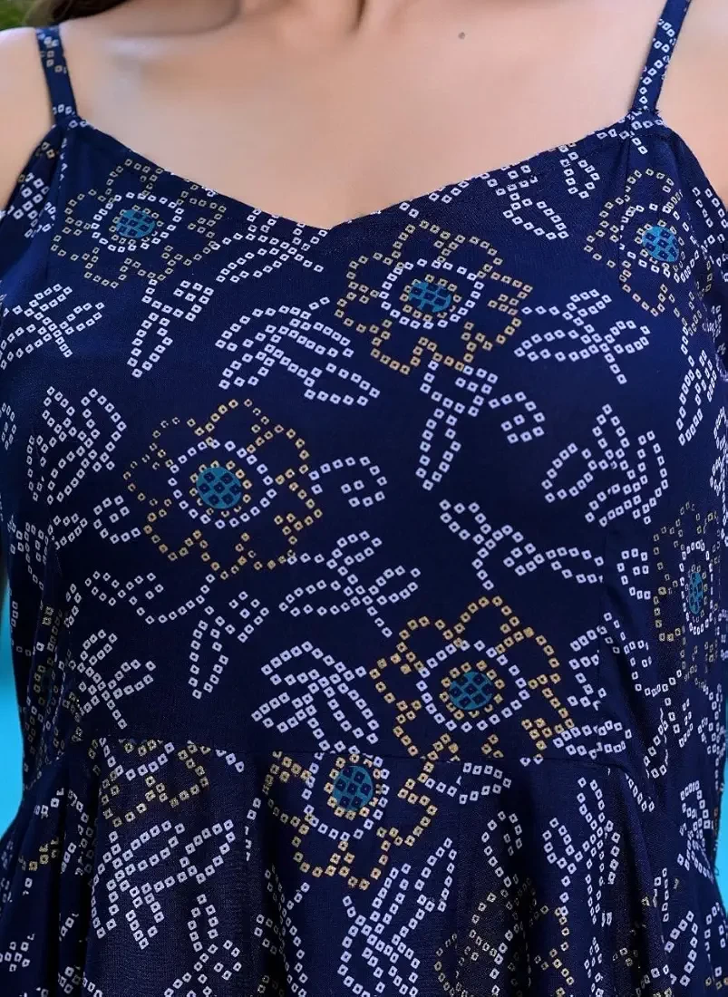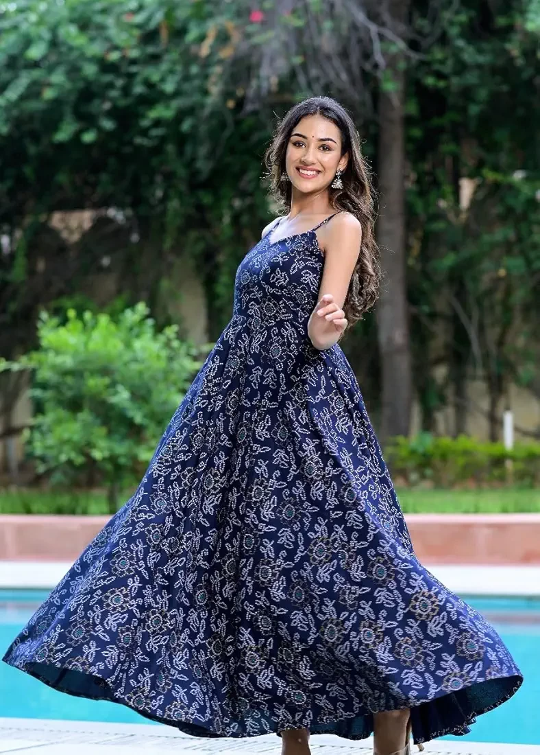 Elegant Women’s Blue Abstract Printed Fit & Flare Maxi Dress made from soft and breathable rayon fabric. Designed with a stylish sleeveless pattern and ankle-length flow, this dress offers all-day comfort and a flattering fit. Ideal for Diwali, festive occasions, and casual wear.