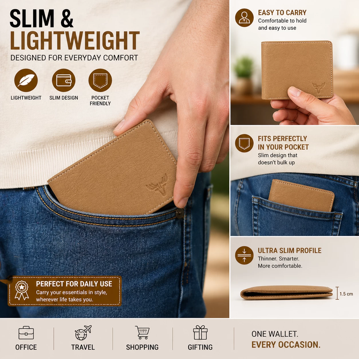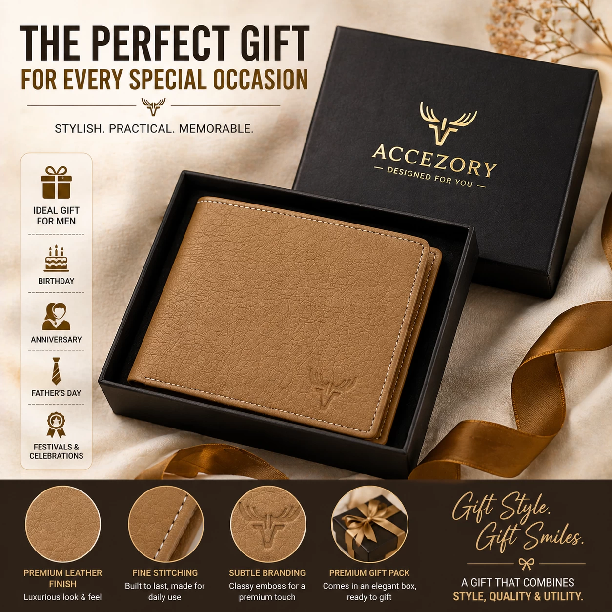 Upgrade your everyday style with the Accezory Men’s Wallet, crafted from high-quality synthetic leather for a premium look and long-lasting durability. Designed for modern men, this wallet offers a perfect balance of style, functionality, and comfort. Its sleek bifold design fits easily in your pocket while providing ample space for your essentials. Whether for daily use or special occasions, this wallet adds a touch of elegance to your personality.