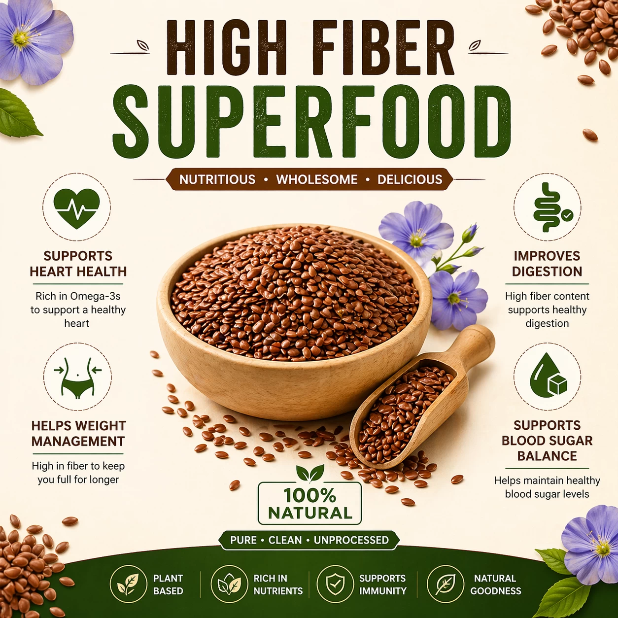 Flax seed is one of the most praised and worshipped superfoods for all its numerous health benefits that sum up to a healthy lifestyle. These tiny seeds are pretty much mighty! They are a rich source of essential nutrients that are not fulfilled in our modern diets. Thus, they are an easy ingredient to add to your diet in your daily life! Accezory offers you premium quality flax seeds that are hygienically packed, fresh, delicious, and crunchy. It has a high nutritional value such as it is a rich source of Omega 3 fatty acids, high fibre content, potent antioxidants, gluten-free, and various mineral content such as iron, zinc, folate, magnesium, manganese, etc.